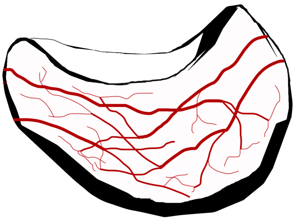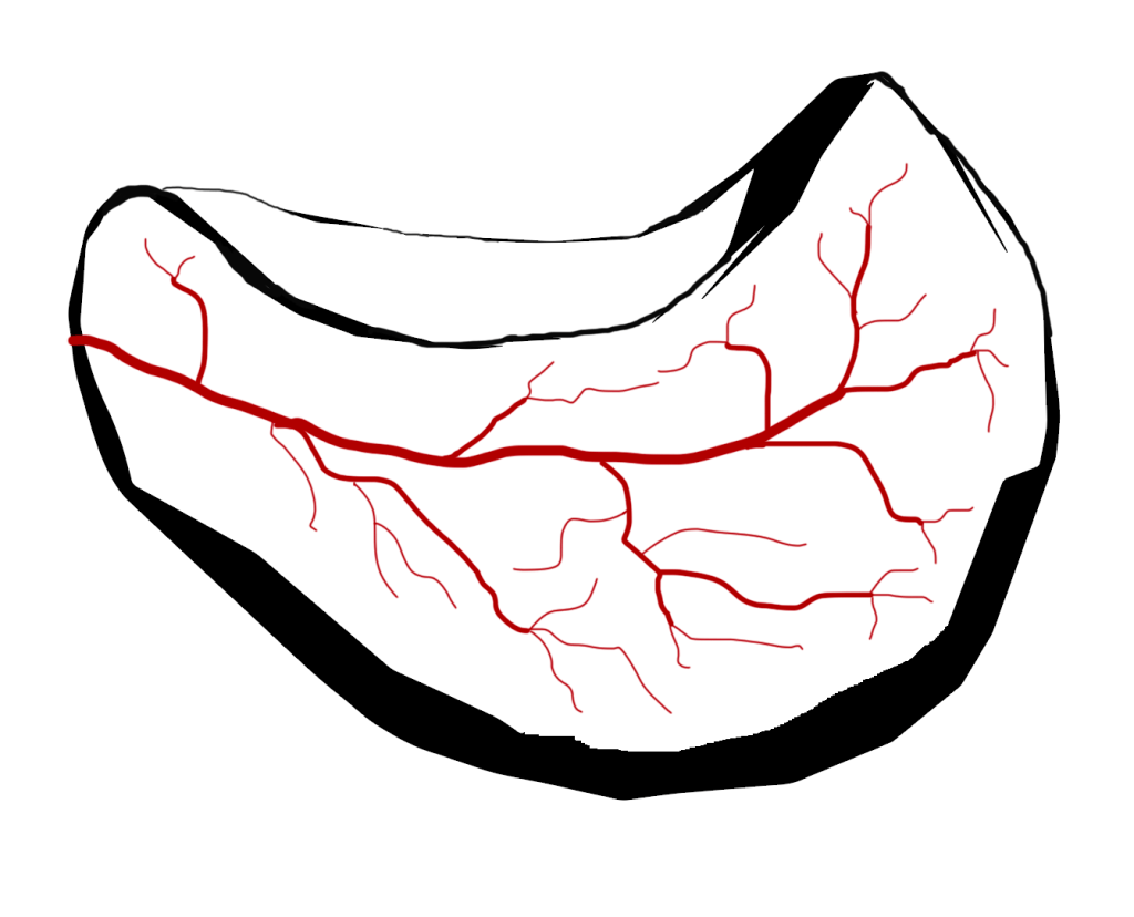 Blood supply to the lunate – In most patients, the lunate has a blood supply coming in from both sides of the wrist. Anatomical studies show that in some people, there is a blood supply only from one side of the wrist, and this single blood supply may be vulnerable in some situations, such as trauma to the wrist. Less than 10% of people have the single blood vessel supply to the wrist, but Kienbock’s disease affects only 1 in around 15000 people, and many of these are asymptomatic.